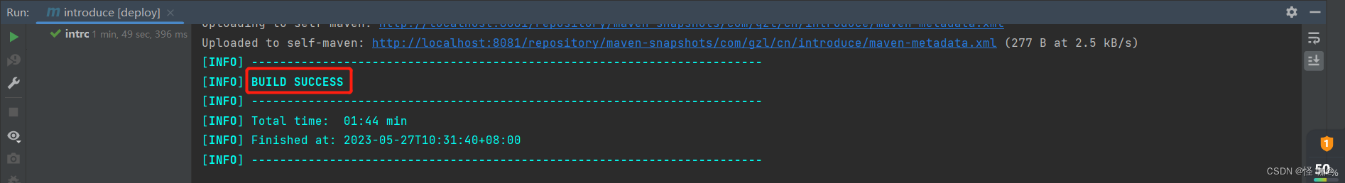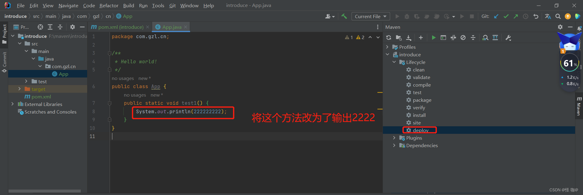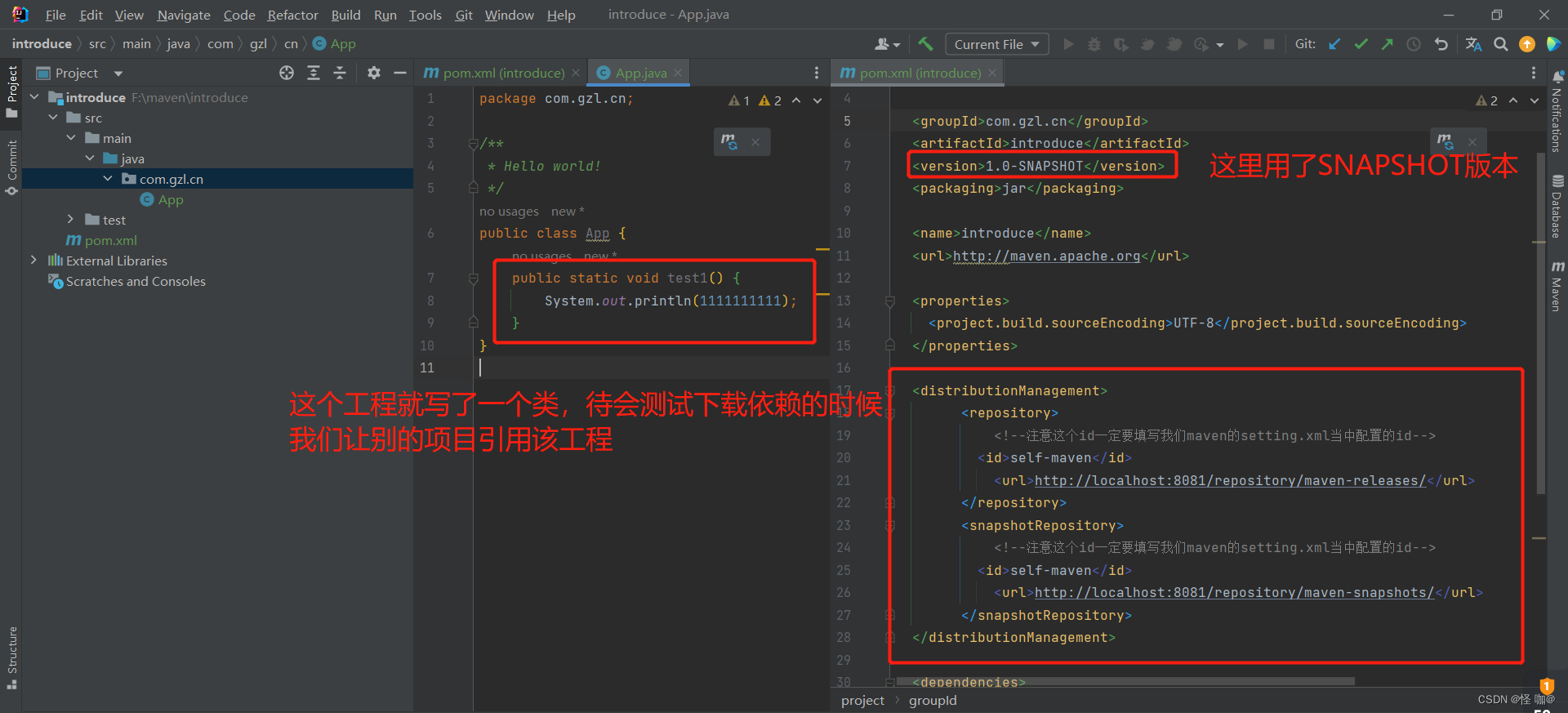 (2)修改一下introduce工程,然后将该工程重新deploy到仓库。