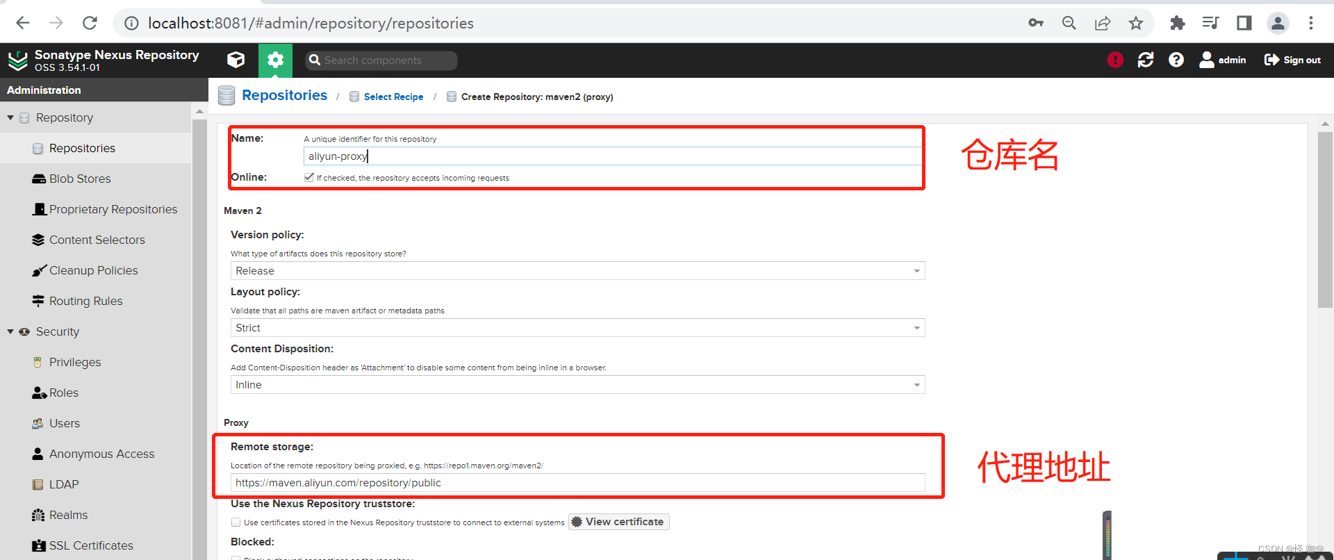 我们也可以再新建一个代理仓库,然后代理到阿里云镜像地址。通过阿里云镜像下载依赖要比maven中央仓库快的多。