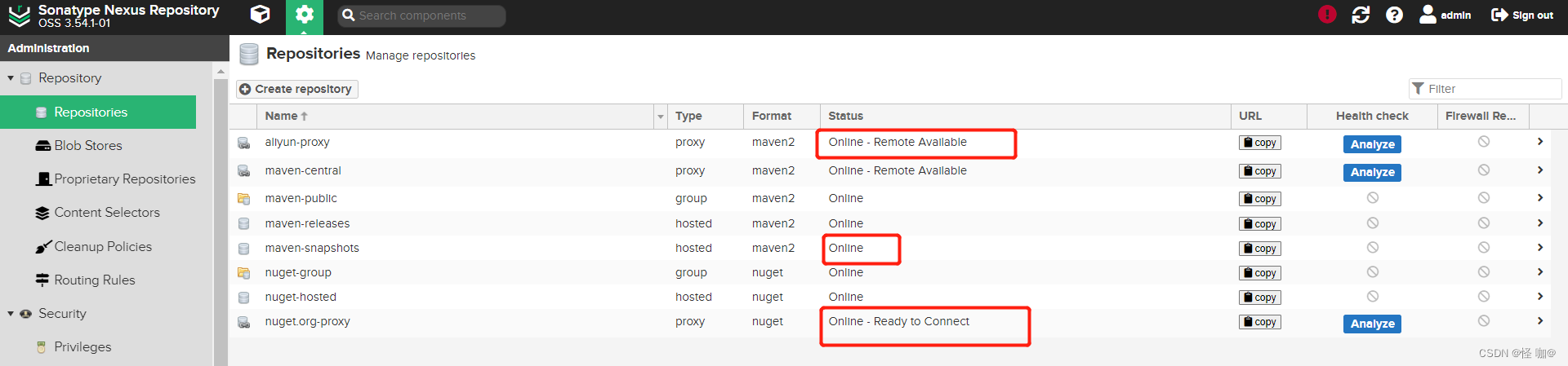 - online-ready to connect:并不是代理仓库用不了。而是你根本还没有一个依赖去访问这个被代理仓库,nexus也不知道这个被代理仓库能不能用,所以它只能展示为待连接状态。