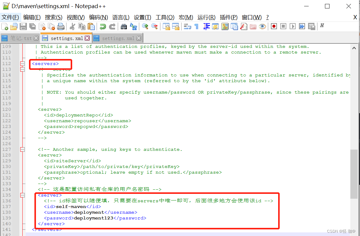 - id:之前server的id,访问仓库组也要拿用户名密码