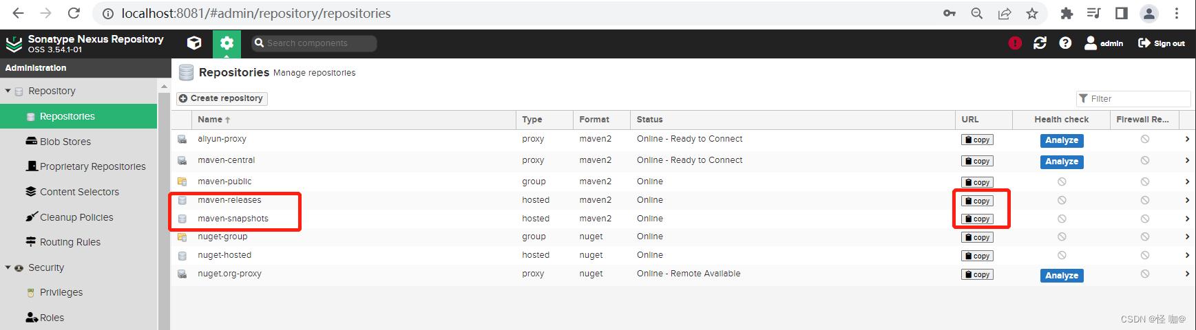 - 六、Nexus仓库配置以及创建仓库