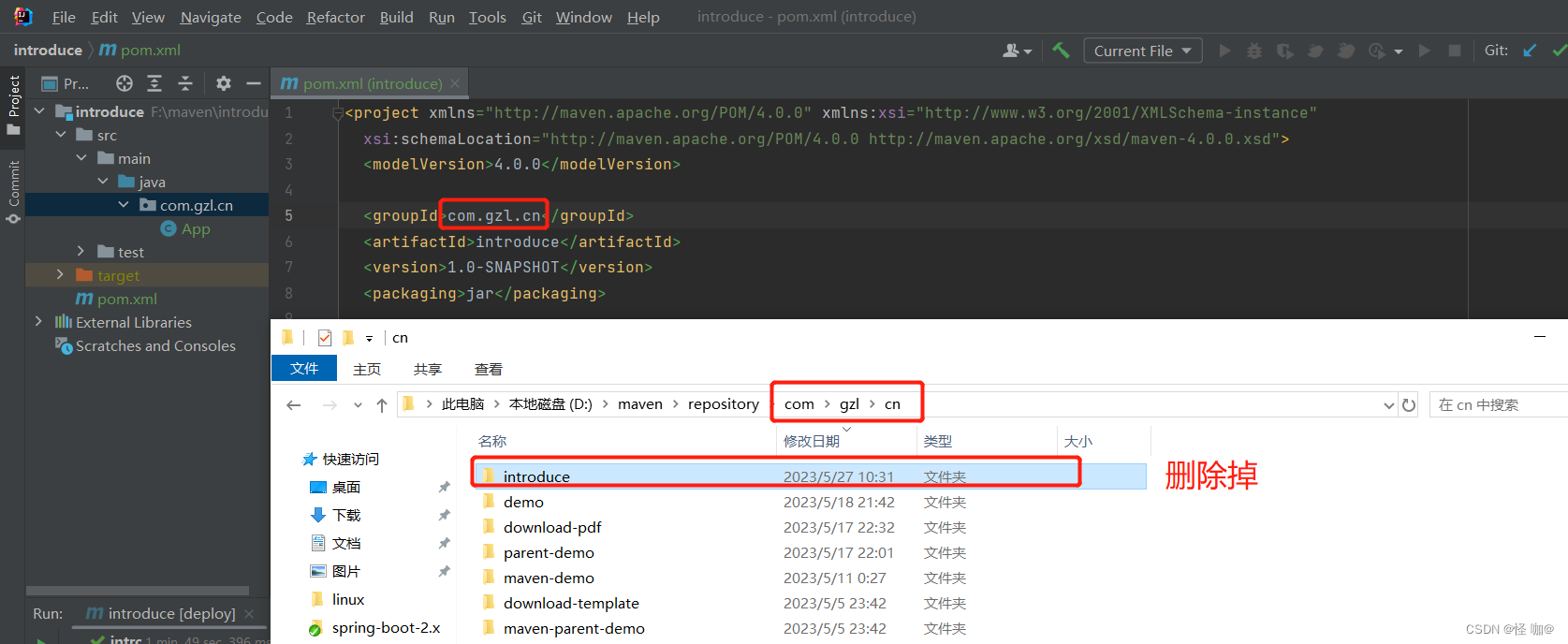 (2)紧接着我们需要找到本地maven仓库当中的introduce包给删除掉