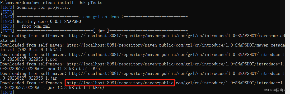 我们基于上面提到的introduce工程和demo工程再顺便测一下SNAPSHOT版本。一般SNAPSHOT版本是为了解决多个人同时开发所产生的问题,而我没有多台电脑,所以模拟起来也比较费劲。