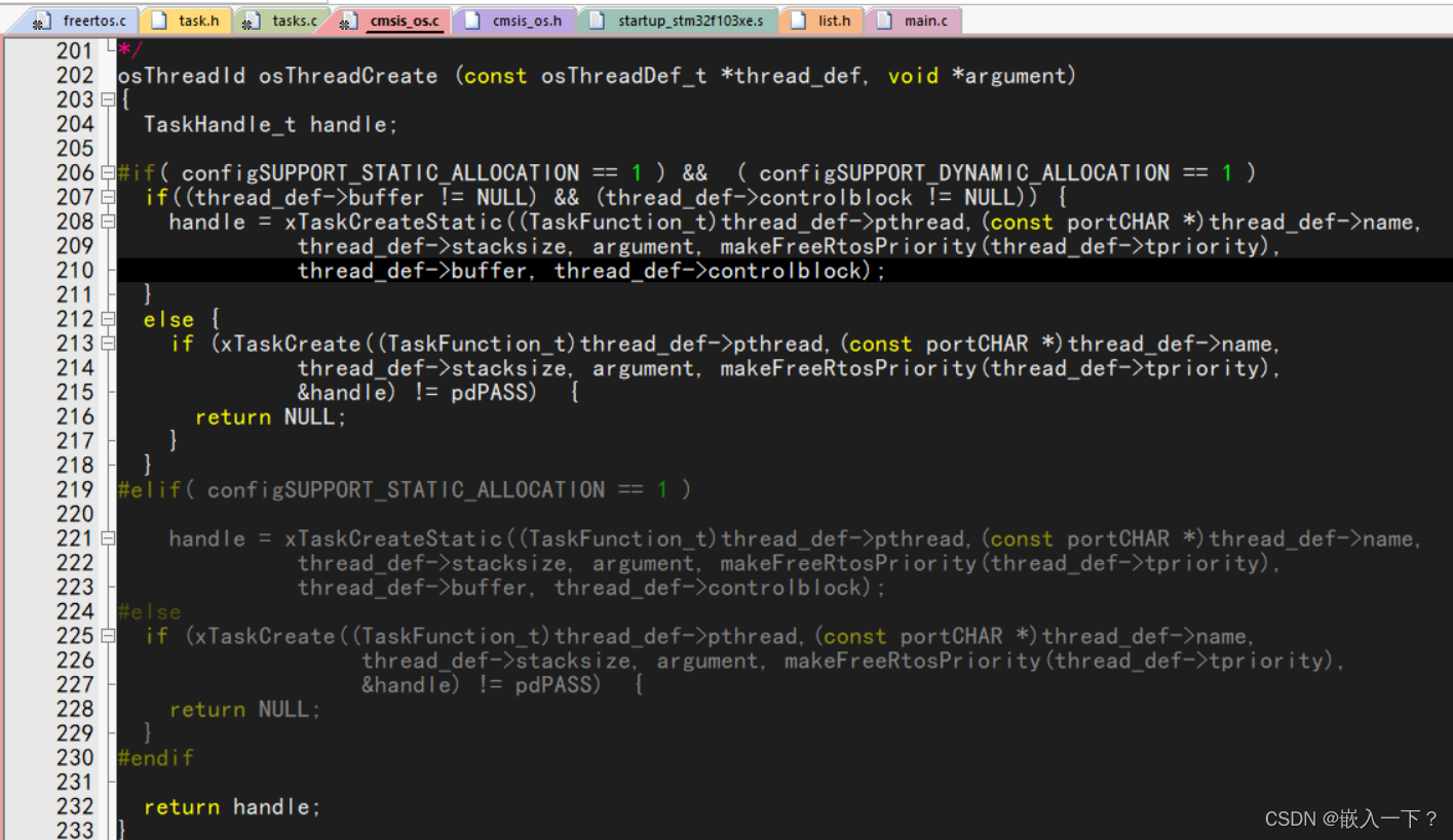 - 使用 STM32CubeMX 代码生成,在 STM32Cube 固件中,通过 ARM 提供的通用 CMSIS-OS( cmsis_os.h 和 cmsis_os.c 文件,这两个文件把给 FreeRTOS 封装了一层,调用这其中的各类函数,和直接调用 FreeRTOS 的函数没有区别 ) 封装层,将 FreeRTOS 用作实时操作系统。也就是说在一套代码里有着两套标准,在阅读源码时需要注意区分。我主要讲解的是 FreeRTOS 的函数,配合 CubeMX 使用,而尽量少用 CMSIS-OS 封装层。
