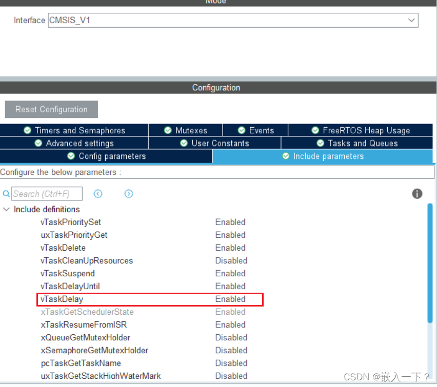 - 将 INCLUDE_vTaskDelay 定义为 1,此函数才可用。