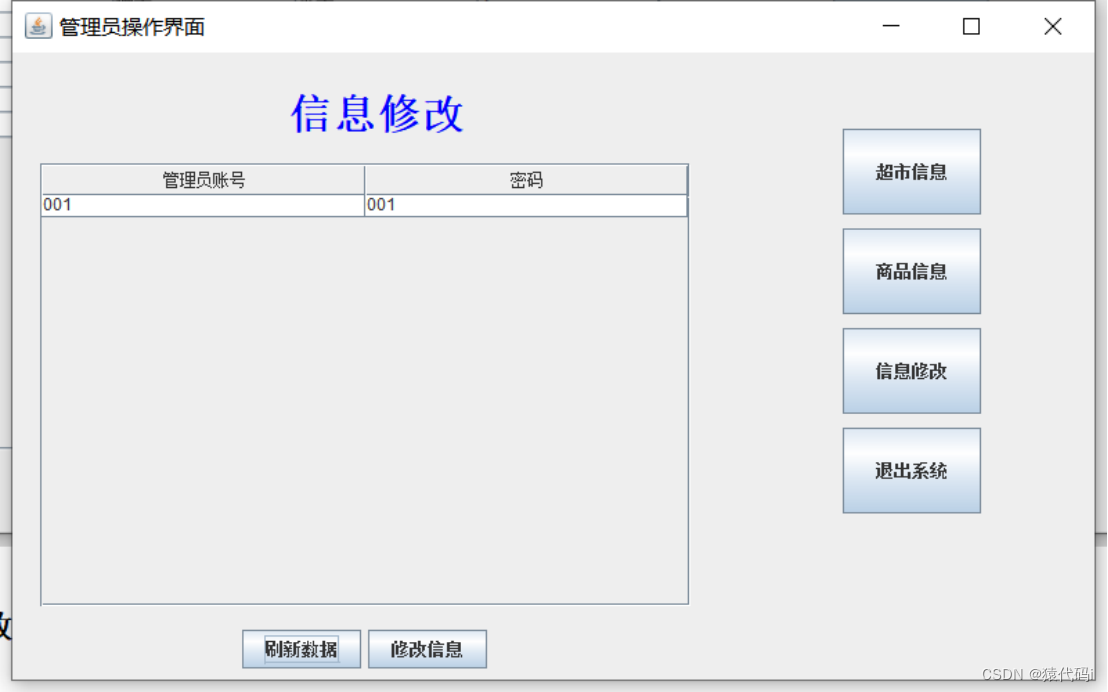 管理员可以对商品的信息进行管理,并且可以参看超市的相关信息。
