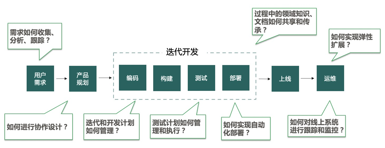 选择合适的工具实现项目价值流的运转, 可以选择使用华为、阿里、腾讯等厂商的一体化平台, 也可选择工具软件自己搭建.