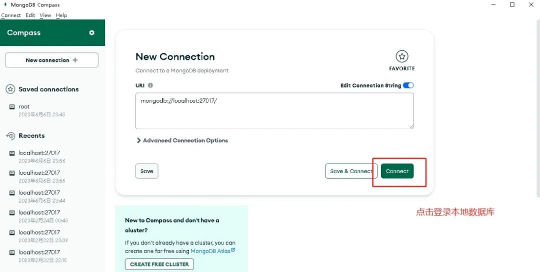 因此MongoDB官网提供的一个可视化管理工具,叫MongoDB Compass,它集创建数据库、管理集合和文档、运行临时查询、评估和优化查询、性能图表、构建地理查询等功能为一体,很方便。