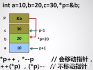 *p++:* 与 ++ 同优先级,结合方向为自右向左,p++,先赋值再自加,因此结果等价于 *p 返回其值,p++