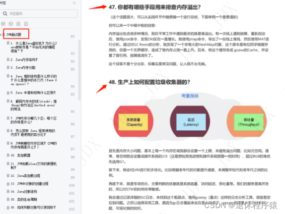第三一个就是深挖现在的高频面试题了,你还别说面试前临时抱佛脚,拿个高频面试手册系统查漏补缺一下多少是对你有帮助的!好巧不巧,这个 LZ 也有!前段时间我在阿里的一个好大哥分享了一份他们内部最新出品的 2022Java 面试突击手册,内容涵盖了:Java 基础,JVM,多线程,Mysql,Spring,Spring Boot,Spring Cloud,Dubbo,Mybatis,Redis,网络,Linux,MQ,Zookeeper,Netty,大数据,算法,项目,设计模式 19 个模块,足足有近 1700 页!LZ 大概也看了下,是由一些大厂高频 Java 面试题汇总而成,快过年了 LZ 也没啥好送的,借此机会,就把这份 Java 面试突击手册送给大家卷(手动狗头)。