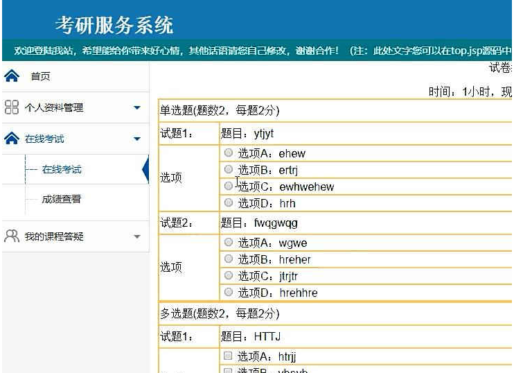 本考研服务系统主要包括系统用户管理模块、课程信息管理模块、教师信息管理、试题题管理、试卷信息管理、登录模块、和退出模块等多个模块,采用目前最流行的B/S结构和java中流行的MVC三层框架SSM(Spring+SpringMVC+MyBatis)和eclipse编辑器、MySQL数据库设计并实现的