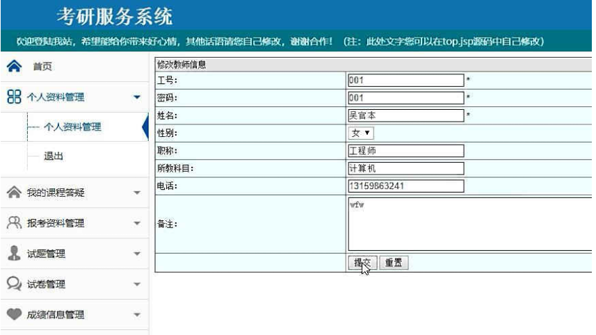 修改教师信息:实现管理员修改教师信息,包括修改教师信息。