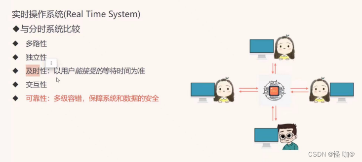 - 软实时系统(能偶尔违反时间规定,如12306火车订票系统,有时候票的余量是不准确的,但是也不妨碍系统的正常运行)
