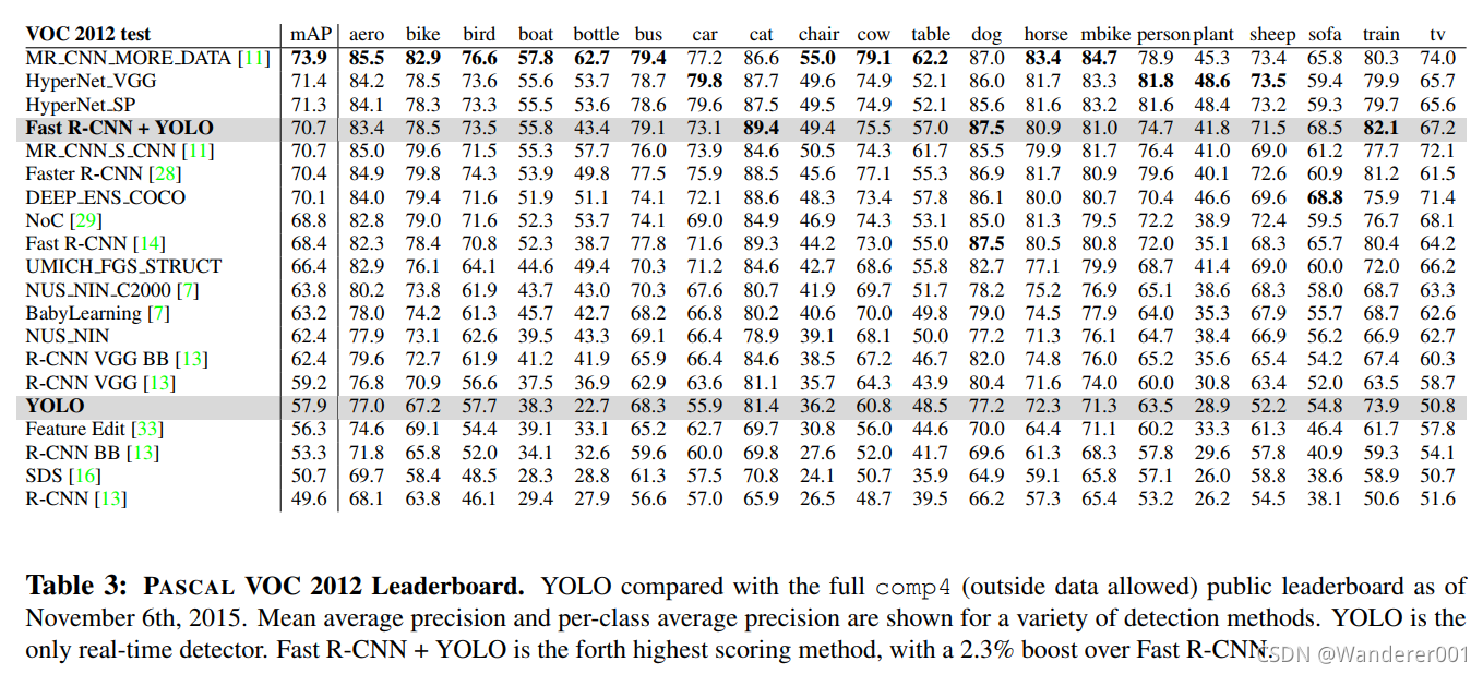 Fast YOLO是PASCAL上最快的目标检测方法;据我们所知,它是现存最快的物体探测器。mAP为52.7%,比之前的实时检测精度提高了一倍多。YOLO将mAP推至63.4%,同时仍然保持实时性能。