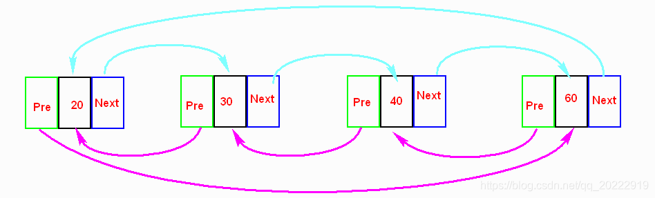 此时列表项40的下一项是列表项50,列表项50的下一项是60。列表项60的前一项是列表项50,列表项50的前一项是列表项40。