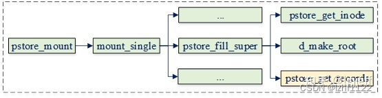在pstore文件系统挂载时会调用pstore_fs_type的mount回调,它会执行挂载相关的操作,其流程如下: