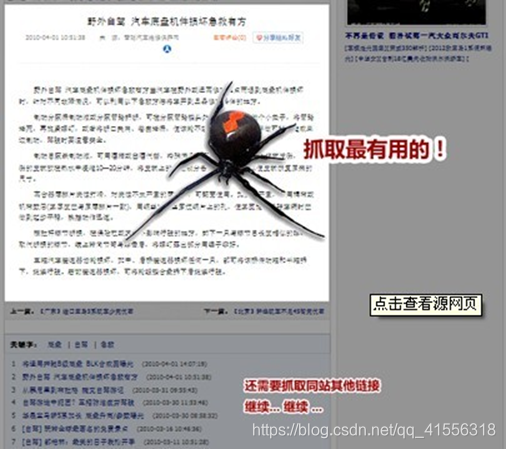 网络爬虫又称为网络蜘蛛(Spider),如果你把整个互联网想象为一个蜘蛛网的构造,每个网站或域名都是一个节点,那我们这只蜘蛛就是在上面爬来爬去,在不同的网页上爬来爬去,顺便获得我们需要的资源,抓取最有用的。做过网站的朋友一定很熟悉,我们之所以能够通过百度、谷歌这样的搜索引擎检索到你的网页,靠的就是他们每天派出大量的蜘蛛在互联网上爬来爬去,对网页中的每个关键字建立索引,然后建立索引数据库,经过了复杂的排序算法之后,这些结果将按照搜索关键词的相关度的高低展现在我们的眼前。那当然,现在让你编写一个搜索引擎是一件非常苦难的、不可能完成的事情,但是有一句老话说的好啊:千里之行,始于足下。我们先从编写一段小爬虫代码开始,然后不断地来改进它,要使用Python编写爬虫代码,我们要解决的第一个问题是:
