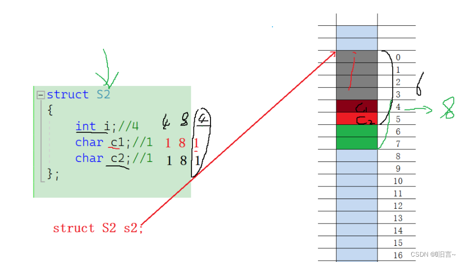 4. 如果嵌套了结构体的情况,嵌套的结构体对齐到自己的最大对齐数的整数倍处,结构体的整体大小就是所有最大对齐数(含嵌套结构体的对齐数)的整数倍。
