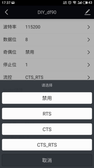 l 点击“流控”可选择“禁用”、RTS_CTS、CTS、RTS