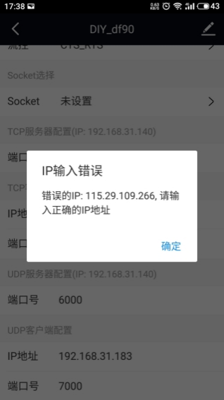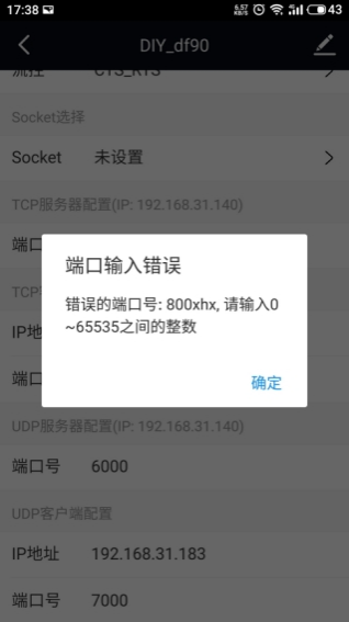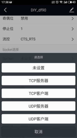 设备配网成功后,点击“完成”,进入设备控制页面,可对串口和Socket参数进行配置;