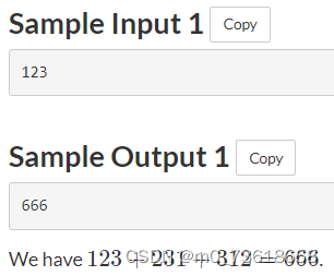 题目要求给定一个3位的整数abc,其中每个数字都不是0。计算abc + bca + cab的结果。
