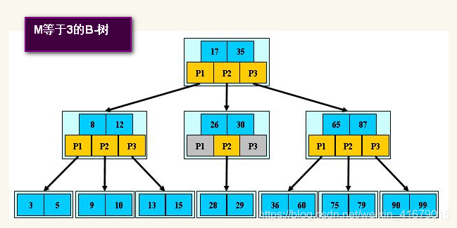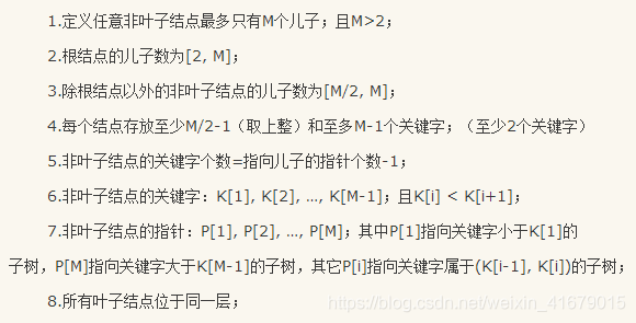 非叶子结点的子树指针P[i],指向关键字值属于[K[i], K[i+1])的子树