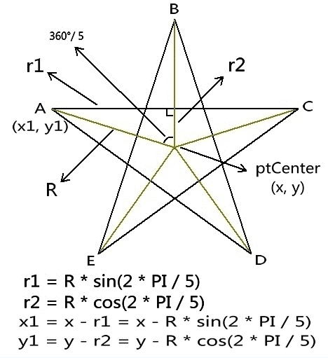 -  center_y + int(r * math.cos(math.pi / 5)),