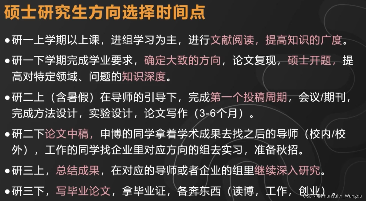 Question:硕士研究生方向选择时间点最好、最正常是怎样的?