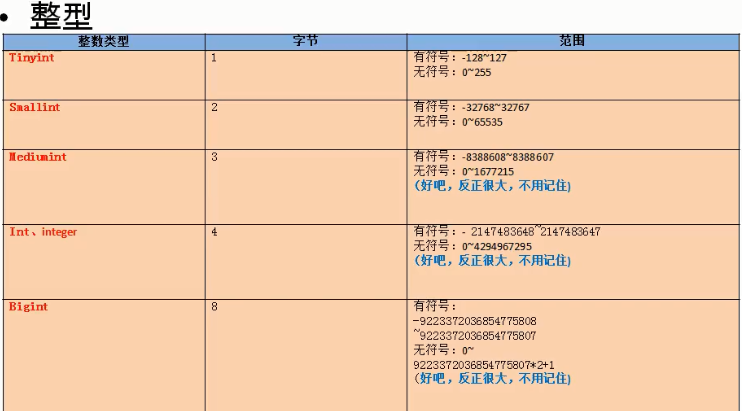 原则:所选择的类型越简单越好,能保存数值的类型越小越好,节省空间。