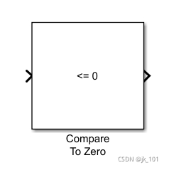 Compare To Zero 模块将输入信号与零进行比较。使用 Operator 参数指定输入与零的比较方式。