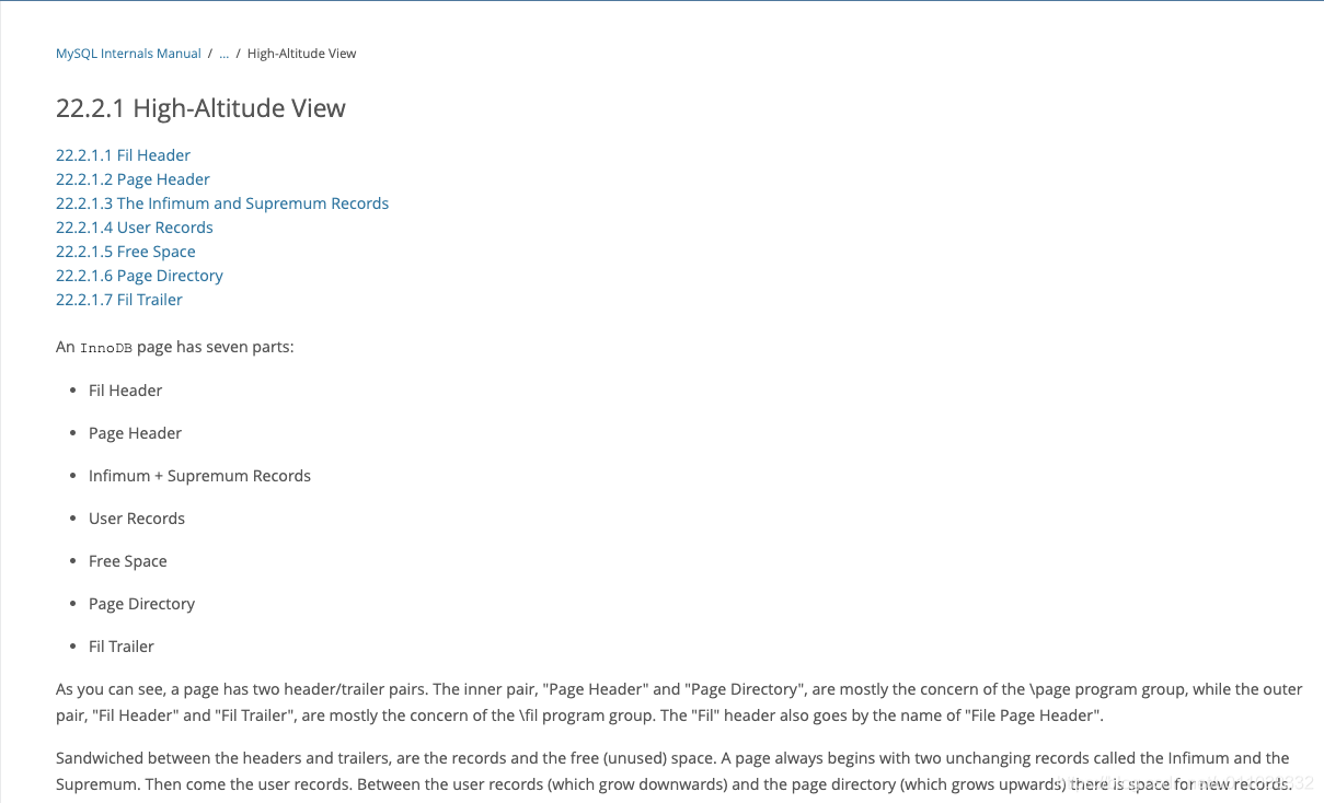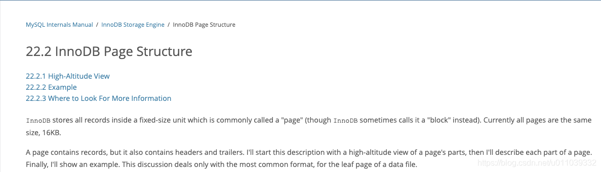 这里会参照 MySQL Internals Manual 来大致的看一下 innodb 里面的 page 的存储相关, 这些是深入了解 mysql 的基础