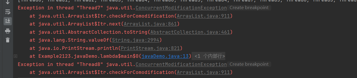出现了修改异常,因为传统的类集框架是针对单线程设计的。如果出现多线程同时修改的情况下再输出则会出现异常。为此JUC中就提供了并发集合来解决集合安全的问题