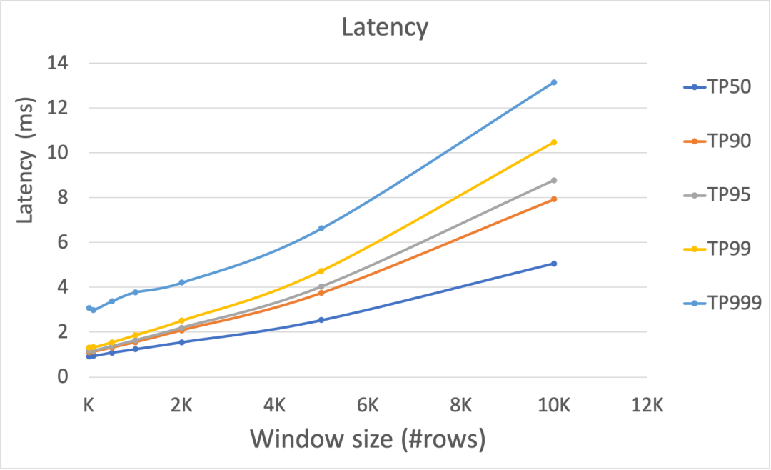 Figure-2: 在窗口内数据条数变化的情况下,延迟性能表现