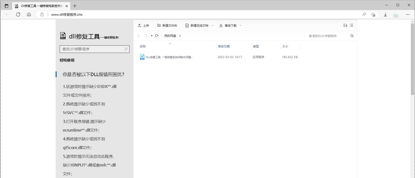 或者打开电脑浏览器在浏览器顶部栏目输入:dll修复程序.site【按键盘回车键前往】进入下载修复文件。(亲测有效)
