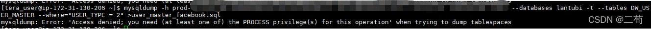 使用mysqldump导出数据时,遇到了一个权限问题(之前没报过这个提示)