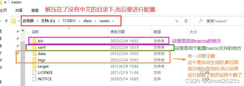 nacos解压的文件最好放在全英文目录下,中文目录下可能出现报错问题