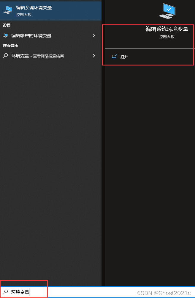 快捷打开环境变量方式:Window + S 输入 环境变量