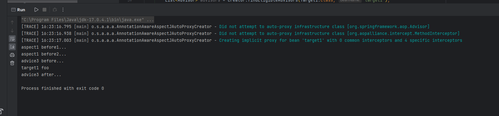 List<Advisor> advisors = creator.findEligibleAdvisors(Target1.class, "target1");