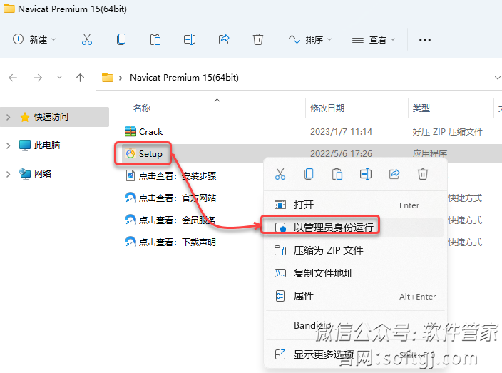 11.打开安装包解压后的【Navicat Premium 15(64bit)】文件夹,鼠标右击【Crack】选择【解压到当前文件夹】。