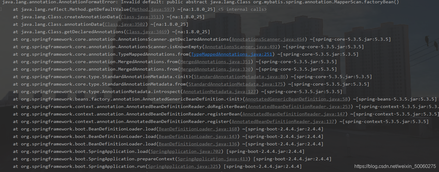 Invalid default: public abstract java.lang.Class org.mybatis.spring.annotation.MapperScan.factoryBean()