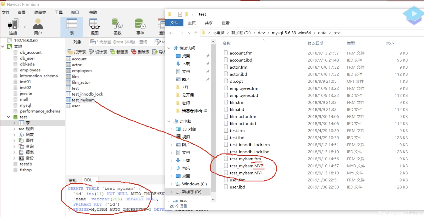 2、MySQL表的存储引擎为MyISAM: