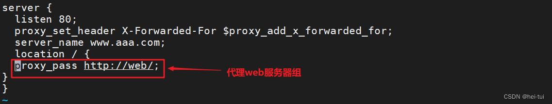 然后修改代理服务器的子配置文件,使其代理web服务器组