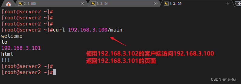 proxy_pass http://192.168.3.101/; #当访问192.168.3.100/main等于访问192.168.3.101#有 / 符号,相当于置换,即访问/main时实际返回proxy_pass后面uri内容,此行为类似于alias