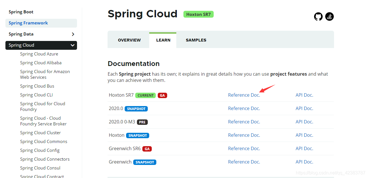 在官网可以查看 当前Cloud 推荐的Boot版本: