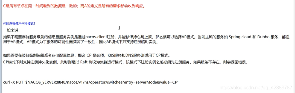 - Nacos 支持AP 和 CP 模式可切换