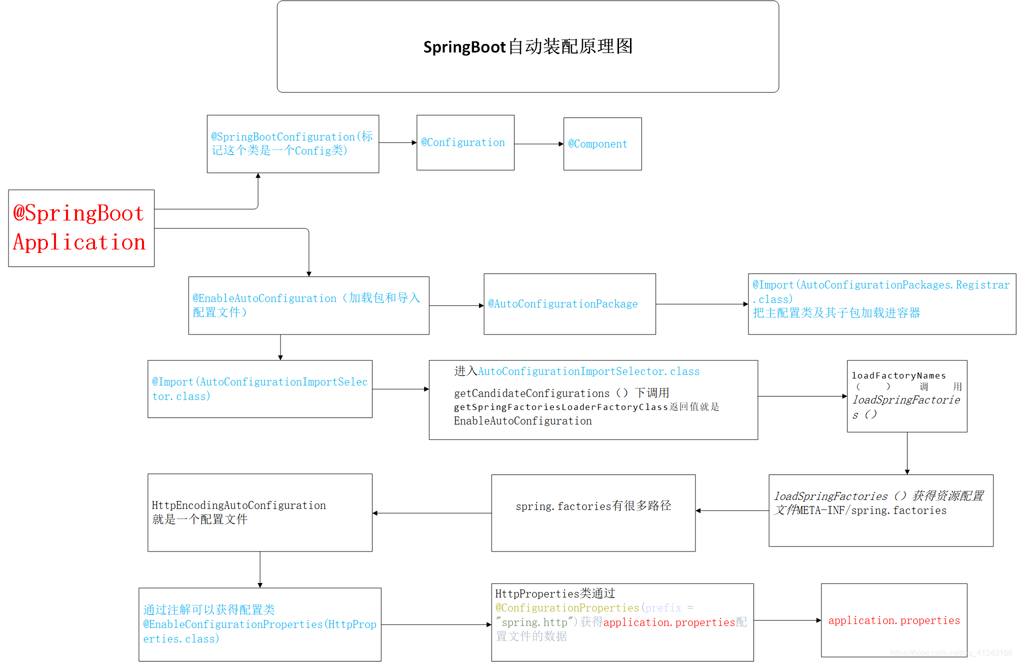 @SpringBootApplication由三个注解组成:@SpringBootConfiguration,@EnableAutoConfiguration和@ComponentScan -